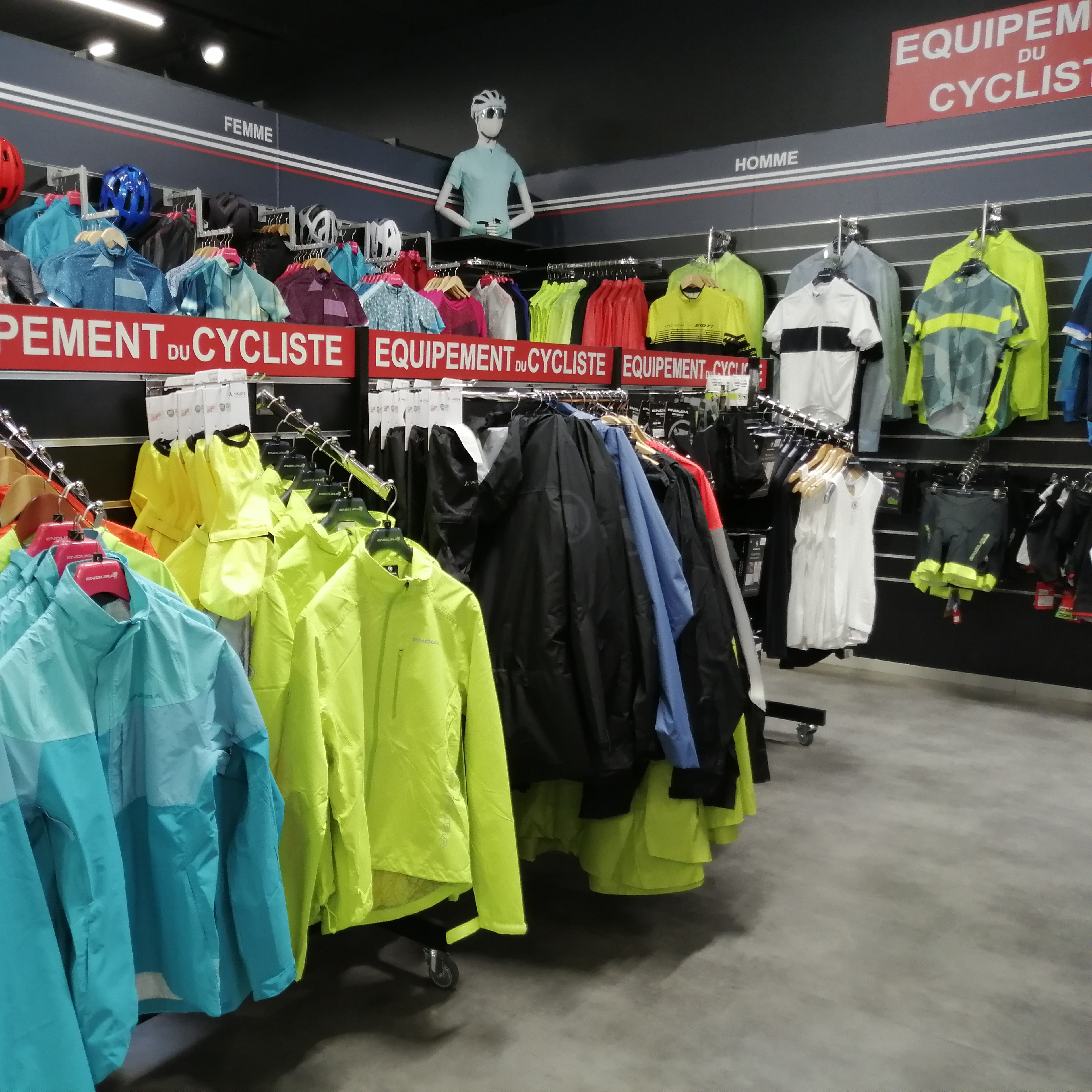 Casques, vêtements, chaussures, protections pour hommes, femmes et enfants des marques Endura, Vaude, Abus Cycling, Sportful … pour toutes les pratiques: Vélotaf, loisir, VTT, route, voyage ...