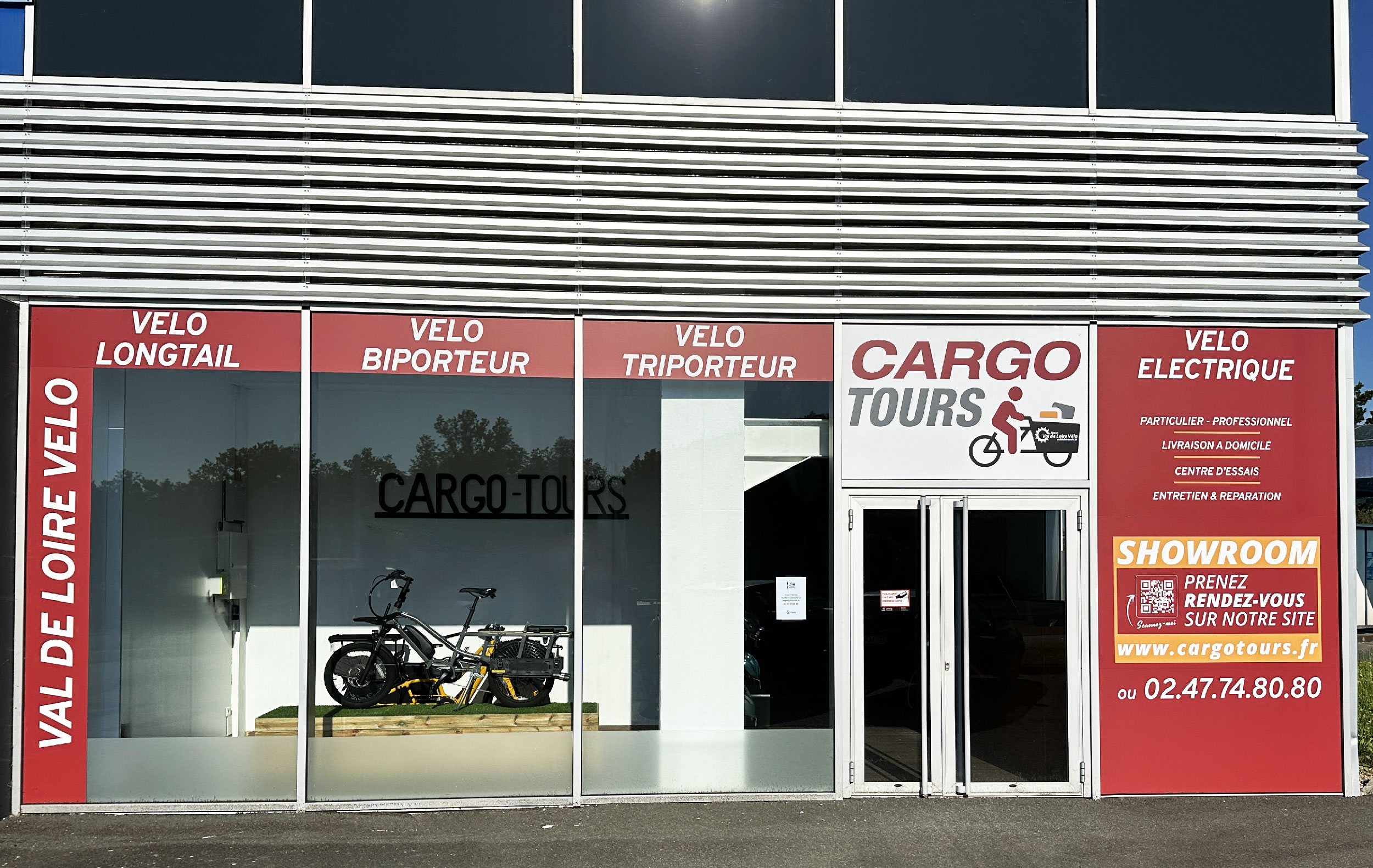 Situé à Chambray-lès-Tours, Cargo Tours est un showroom de 120m² entièrement dédié aux vélos cargos. En partenariat avec le Groupe VAL DE LOIRE VÉLO, nous offrons une gamme exceptionnelle de triporteurs, biporteurs et vélos longtail, répondant aux besoins de tous les cyclistes, qu’ils soient parents, commerçants ou passionnés de mobilité durable.
