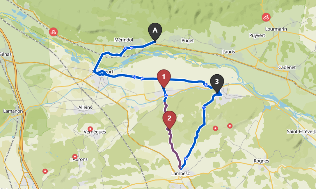 Cyclisme sur route - Intermédiaire. Bonne condition physique nécessaire. Surfaces goudronnées et faciles à emprunter.